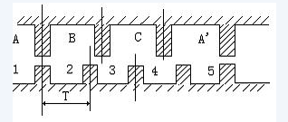 電機(jī)轉(zhuǎn)子均勻分布著很多小齒,定子齒有三個(gè)勵(lì)磁繞阻,其幾何軸線(xiàn)依次分別與轉(zhuǎn)子齒軸線(xiàn)錯(cuò)開(kāi)。0、1/3て、2/3て,(相鄰兩轉(zhuǎn)子齒軸線(xiàn)間的距離為齒距以て表示),即A與齒1相對(duì)齊,B與齒2向右錯(cuò)開(kāi)1/3て,C與齒3向右錯(cuò)開(kāi)2/3て,A'與齒5相對(duì)齊,(A'就是A,齒5就是齒1)下面是定轉(zhuǎn)子的展開(kāi)圖: